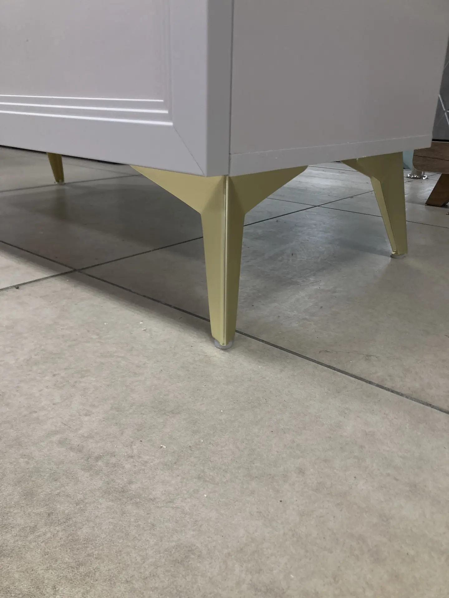 Фасады выполнены из ЛДСП в цвете «кашемир» толщиной 16 мм, а по краям фасады облицованы рамочным профилем из МДФ с рельефной фрезеровкой толщиной 26 мм.