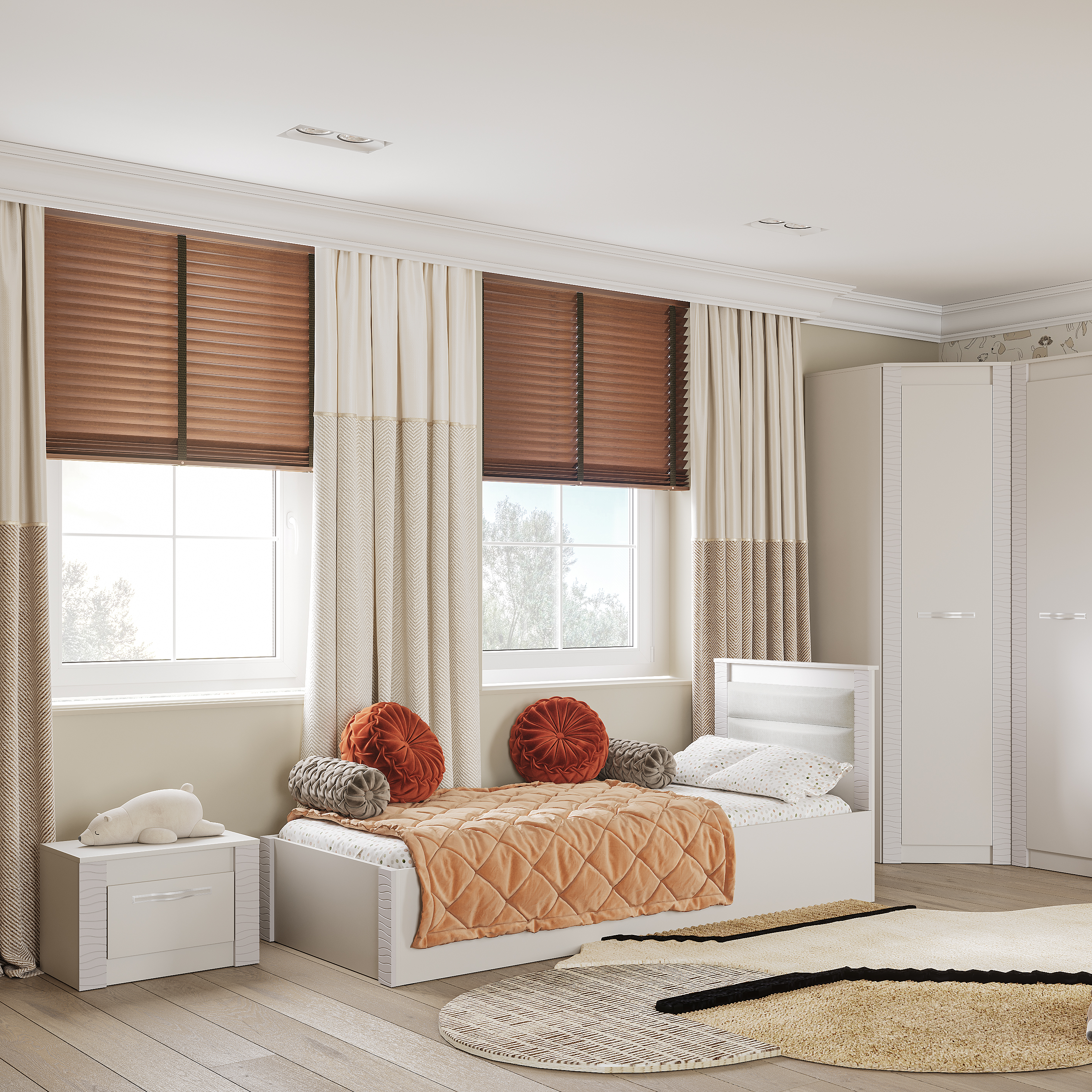 Мягкое изголовье – корпус ДСП, поролон 30 мм, ткань велюр в цвете "миндаль", крепится шурупами 4x30.