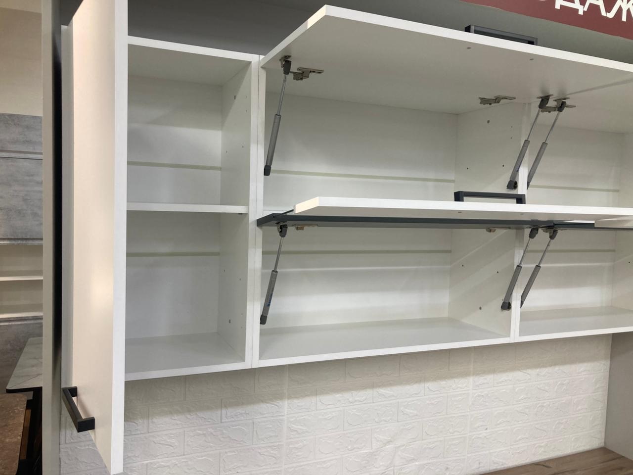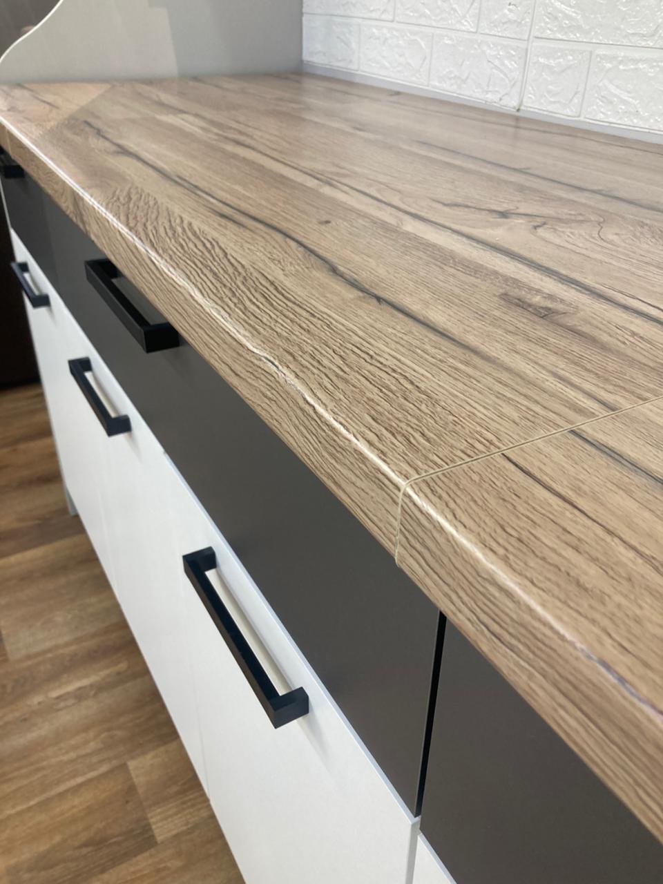 Гарнитур оснащен прочной столешницей толщиной 38 мм в декоре Дуб кера, устойчивой к влаге, царапинам и износу. Кромка толщиной 0,45 мм и квадратные опоры из АБС-пластика обеспечивают долговечность. Полки выдерживают до 10 кг, а ящики — до 5 кг, что делает кухню функциональной и надежной.