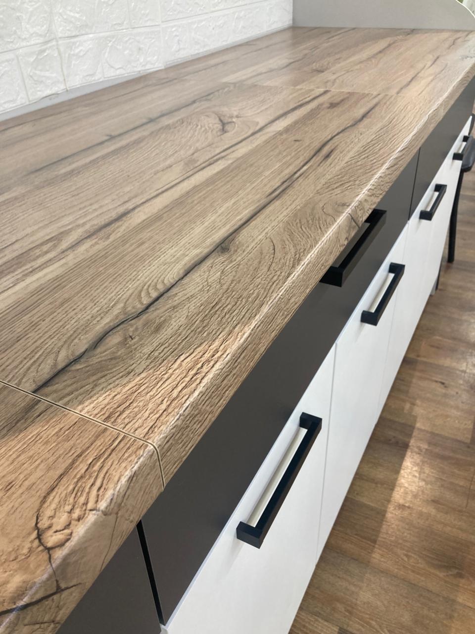 Кухня Монтана легко монтируется с помощью угловых навесов с пластиковой заглушкой. Раздельная столешница позволяет заменить секцию 800 мм на накладную мойку (приобретается отдельно), обеспечивая гибкость в планировке. Поверхность, устойчивая к загрязнениям, делает уход простым, а компактный дизайн идеален для современных интерьеров.