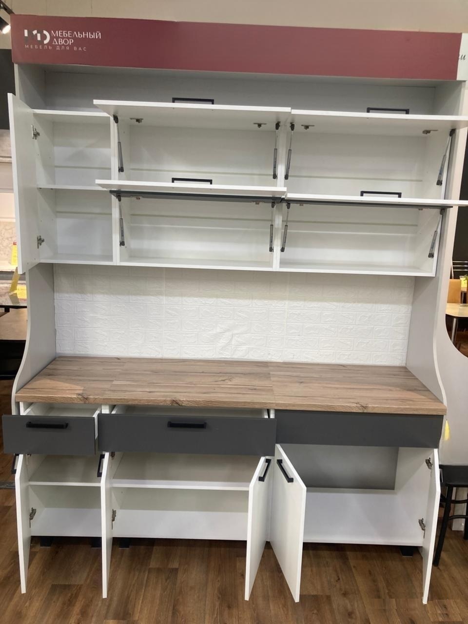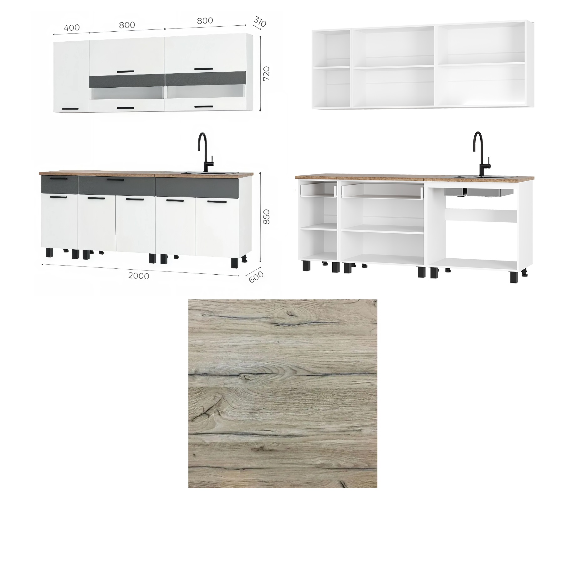 Кухонный гарнитур Монтана 2.0 м от БТС — это трендовое сочетание цветов и функциональности. С столешницей Дуб кера (800+800+400 мм, толщина 38 мм), элегантными стекло-створками и компактной конструкцией, он идеален для небольших кухонь. Закажите для стильного и практичного интерьера!
