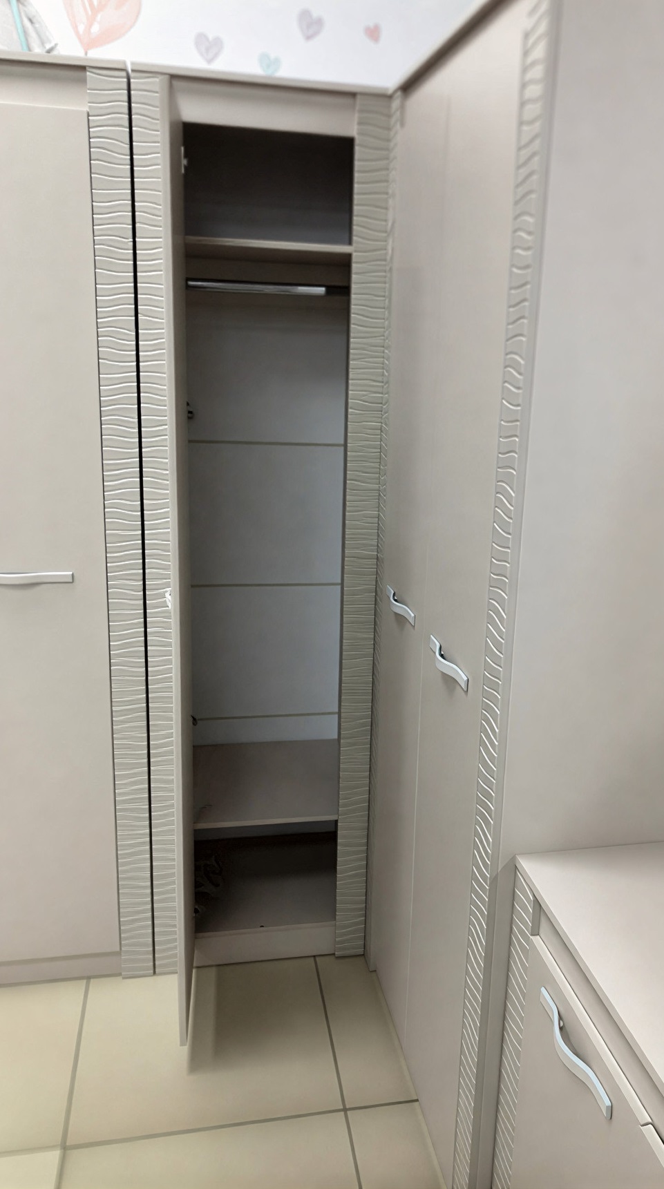 Модульная коллекция «Монако» - это универсальное решение с эргономичным дизайном и функциональностью для современного дома. Фрезеровка с волнообразными узорами на фасадах привлекает внимание. Интерьеры с белыми декорами в 2024 году заменяются на нюдовые тона. Трендовый оттенок «кашемир» позволяет использовать в интерьере теплые и холодные декоры, а также различные варианты цветового решения домашнего текстиля, аксессуаров и других элементов. Мягкий приглушённый оттенок «кашемир» является изысканным выбором для стильного дома и придаёт нотку нежности и уюта.
