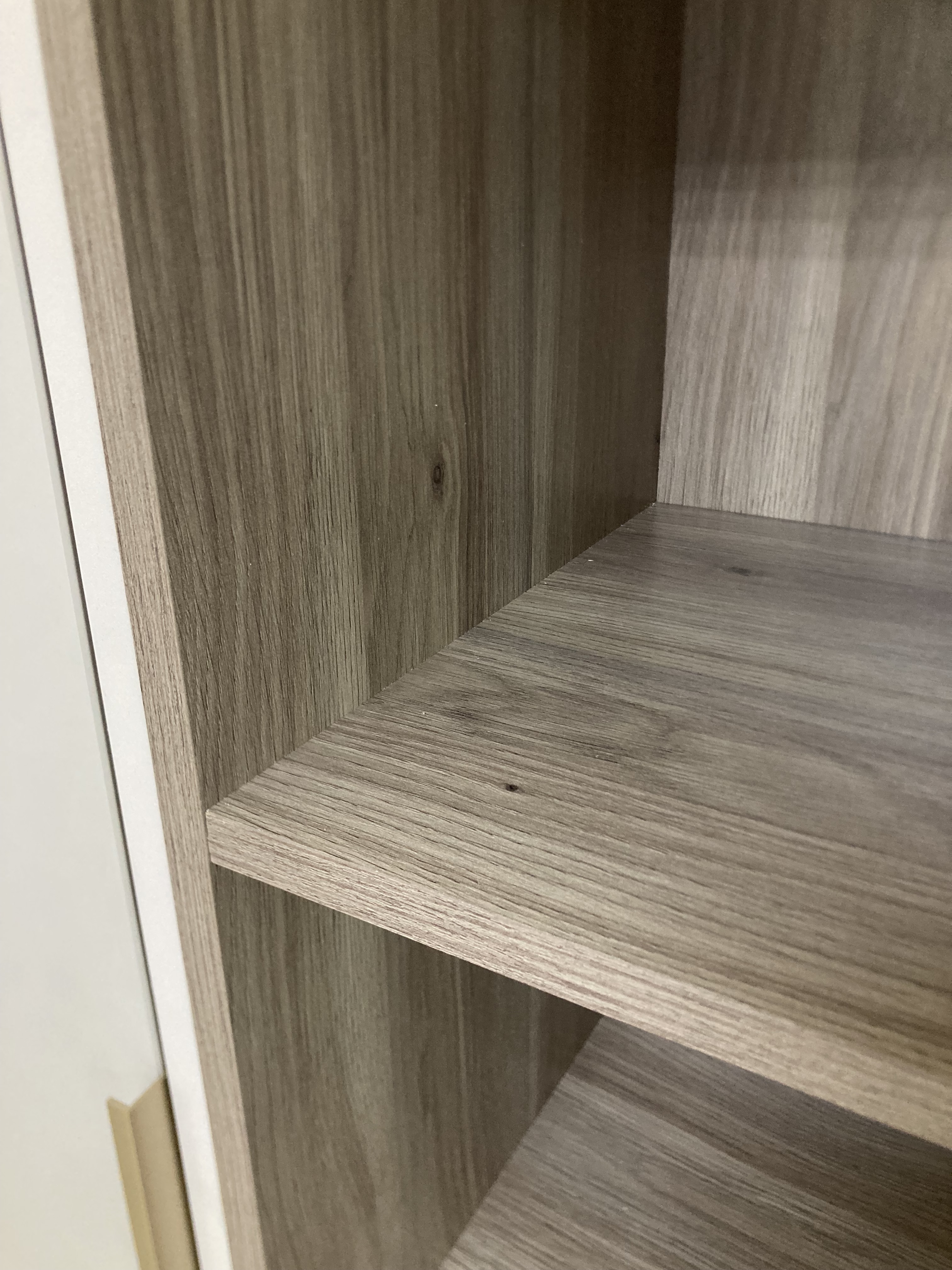 Несмотря на визуальную легкость, стеллаж очень прочный. Полки выдерживают нагрузку до 10 кг каждая. Корпус из качественного ЛДСП с защитной кромкой гарантирует долгий срок службы без сколов и потертостей.