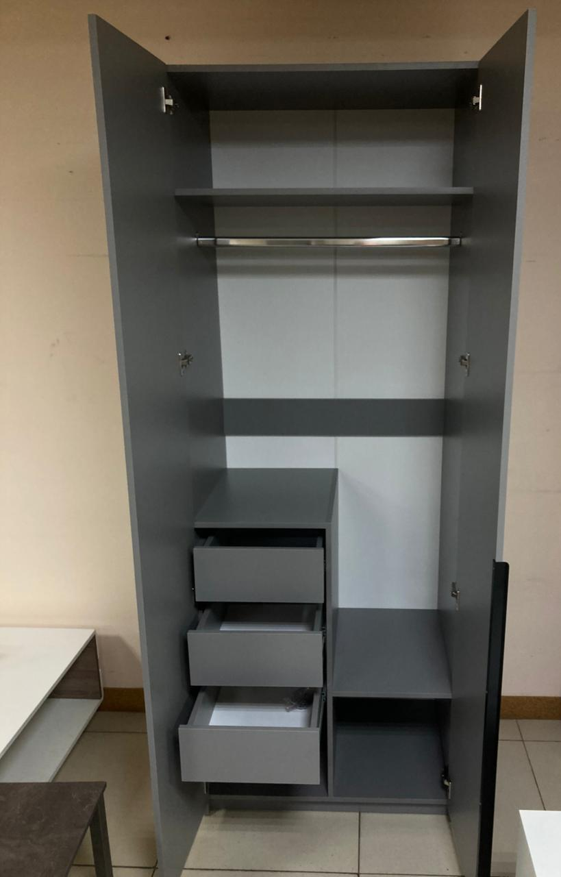Шкаф 2-х створчатый с 3-мя ящиками Ольга-6 серый шифер шириной 800, высотой 2200, глубиной 510 от фабрики производителя мебели Фант с фасадом из ЛДСП и корпусом ЛДСП