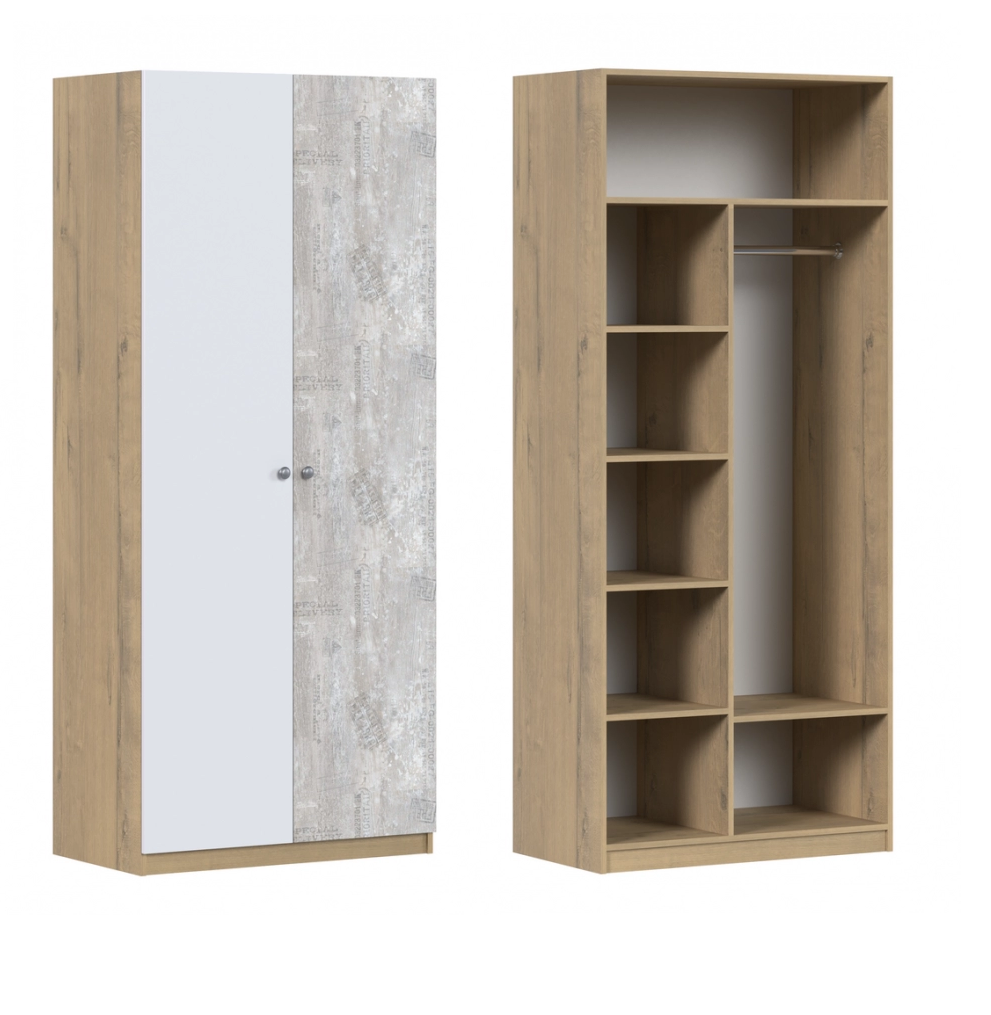 Шкаф плательный Ассоль Дуб бунратти/анкор белый/дельмар за 15 850 руб. | Шкафы распашные – купить мебель от производителя в Иркутске, Ангарске