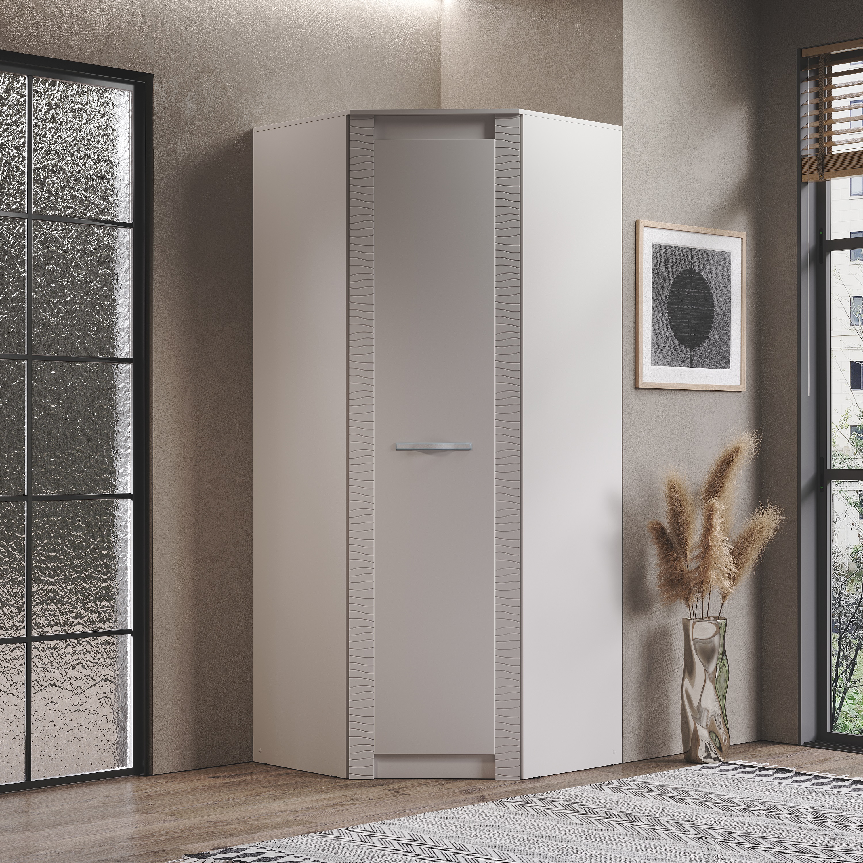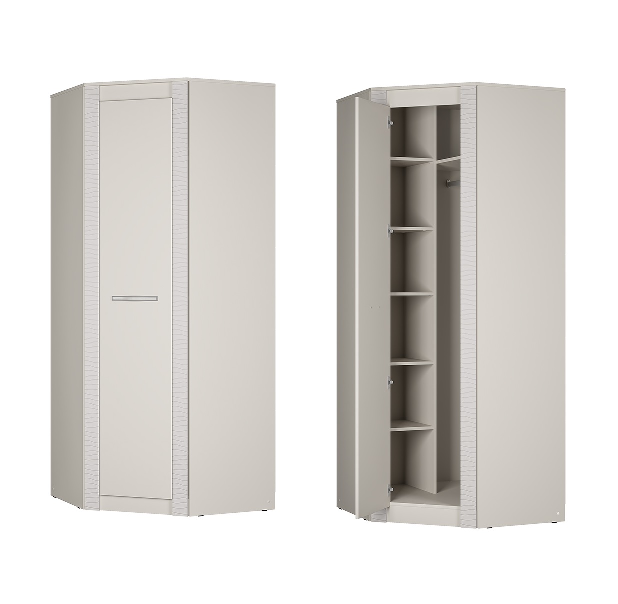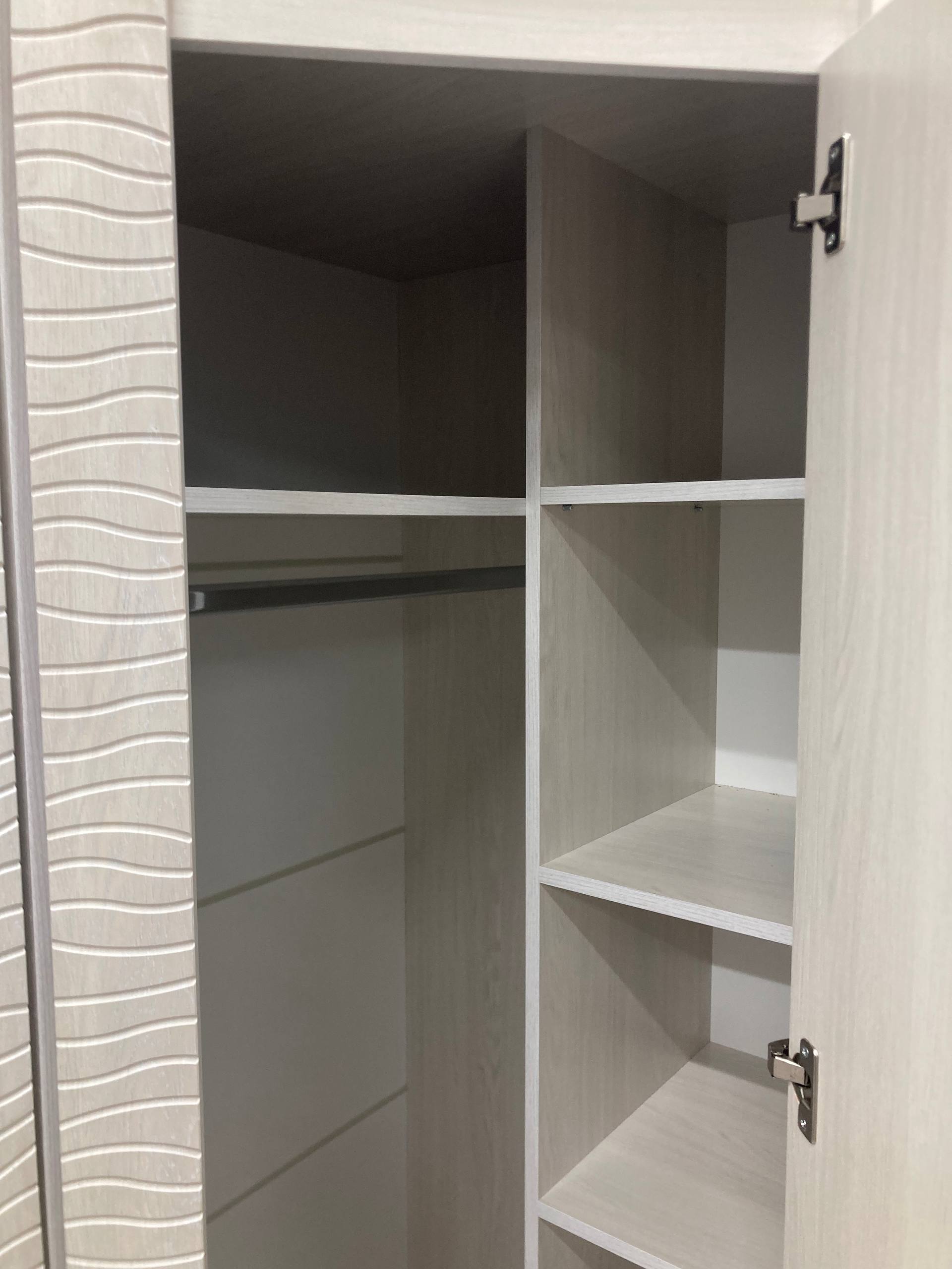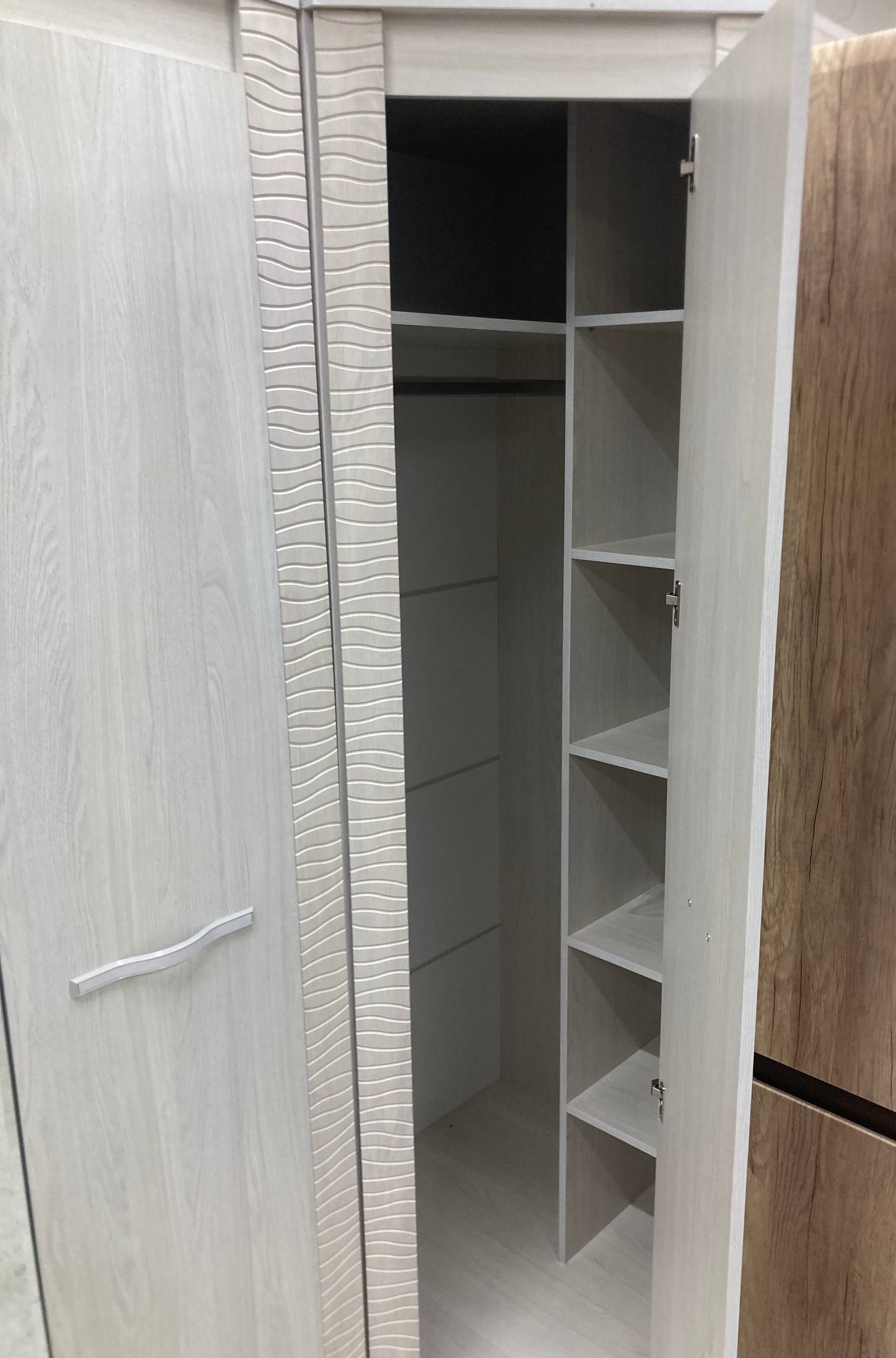 Угловой шкаф "Монако" ШК-42 относится к одноименной модульной серии. Модель не имеет вычурного декора и лишних деталей, выполнена в сдержанном и лаконичном стиле. Комплектация шкафа представляет собой несколько полок для хранения вещей в сложенном виде, а также отделение с хромированной штангой для одежды на вешалках. Для создания модели используется качественная ЛДСП цвета "кашемир". Габаритные размеры: высота – 2200 мм, глубина - 903 (490) мм, ширина - 903 (490) мм.