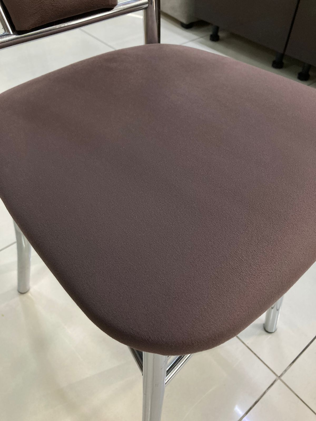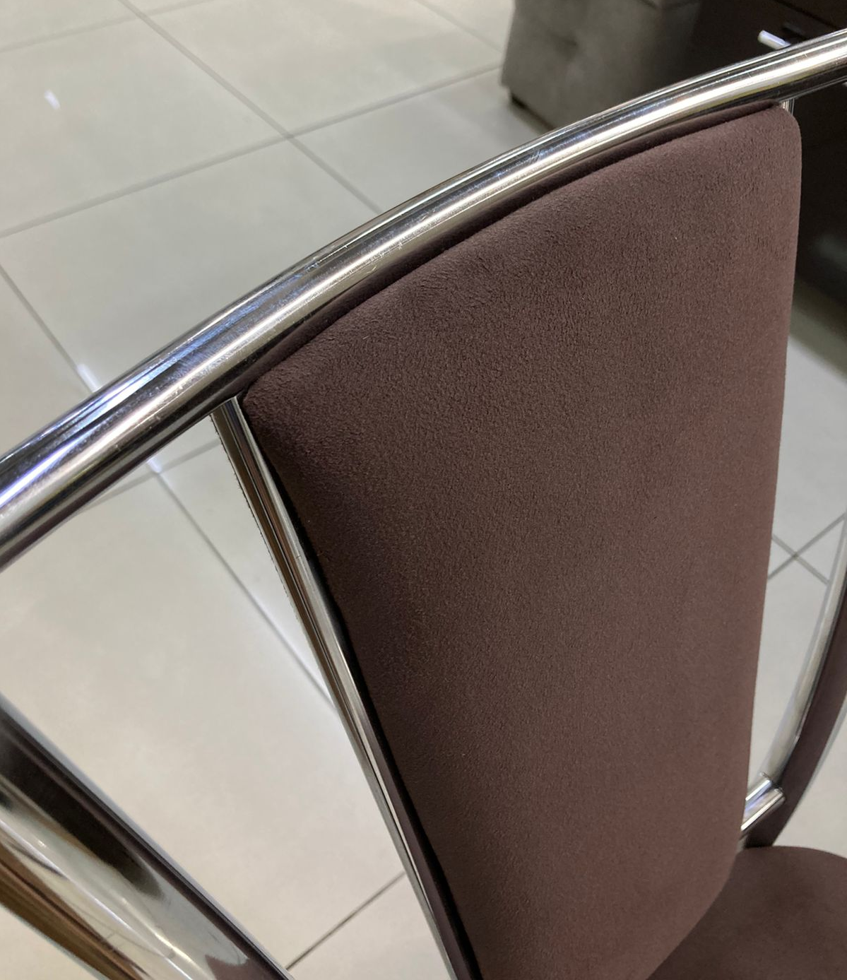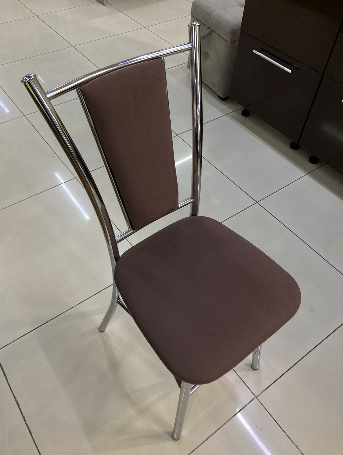 Элегантный стул с хромированным каркасом и велюровой обивкой в шоколадном цвете